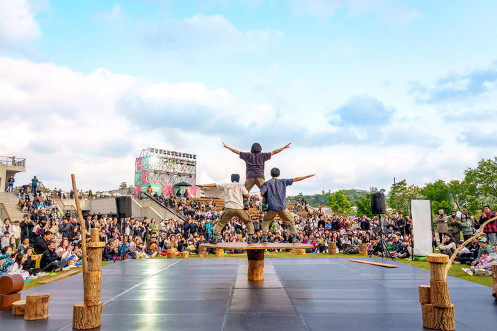 1925년 창단해 101년의 전통을 이어온 동춘서커스는 사이키델릭 록밴드 전파상사와 함께 공중 곡예 등 서커스와 음악이 결합된 ‘신바람 동춘’ 공연을 선보인다. 공연창작집단 사람의 ‘숨’은 크레인을 활용해 30m 상공 위 밧줄에서 펼치는 고공 퍼포먼스로, 중력을 거스르는 신체 움직임을 통해 삶과 죽음의 경계를 예술적으로 풀어낸다.