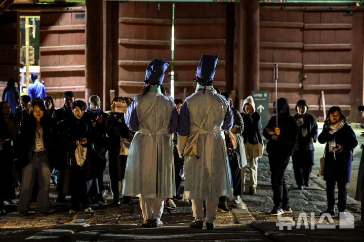 10일 밤, 창경궁 정문 홍화문 앞에 도화서 화원 2명이 이 초대장을 받은 야간 궁궐 활용 프로그램 ‘동궐동락’ 사전 리허설 참가자들을 맞았다.