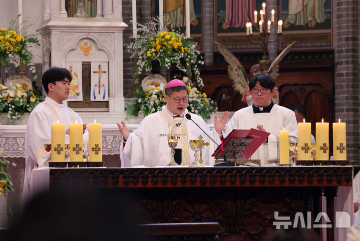 천주교 서울대교구는 이날 정오 명동성당에서 교구장 정순택 대주교 주례로 ‘주님 부활 대축일 미사’를 거행했다.