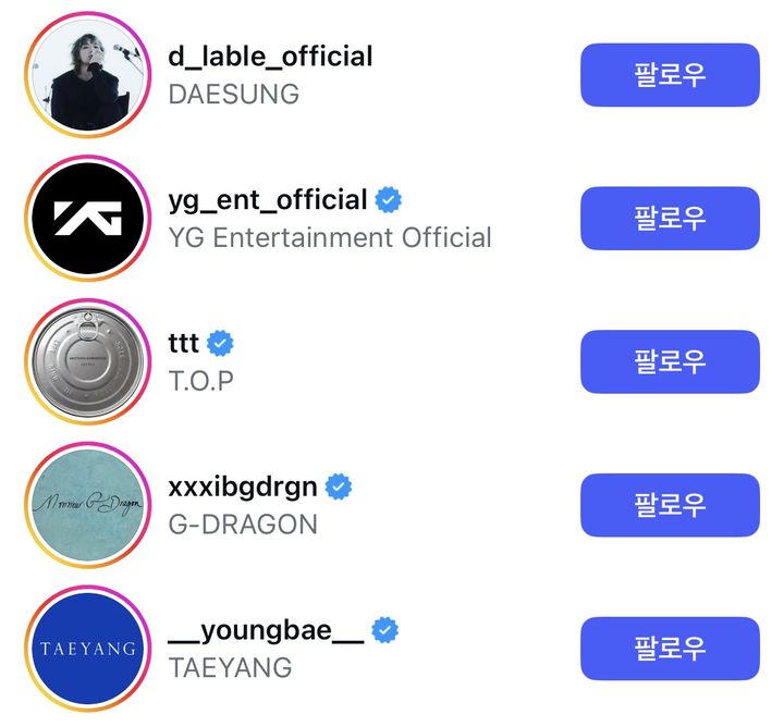 빅뱅, 데뷔 20주년 계정 개설…탈퇴 탑까지 팔로우 2