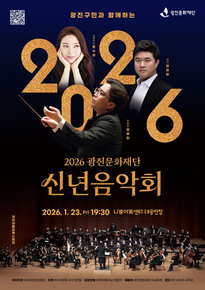 11일 광진문화재단에 따르면, 올해 신년음악회는 병오년(丙午年) 새해를 맞아 희망과 도약의 메시지를 담은 공연으로, 세계적으로 인정받는 소프라노 황수미를 필두로 탄탄한 출연진과 정교하게 구성된 프로그램을 선보인다.