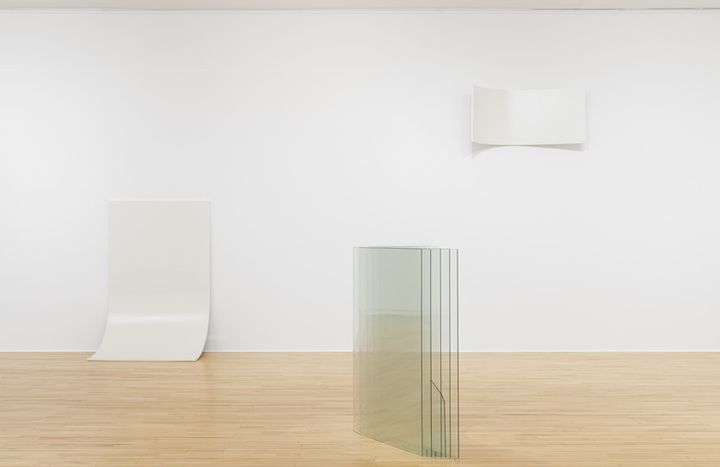 대표작 ‘배열 속의 또 다른 배열(Arrangement within arrangements)’은 이러한 조형적 사유를 압축적으로 보여준다. 크기와 형태가 서로 다른 유리판들이 적층된 이 작업은 투명한 면의 중첩, 빛의 반사, 그림자의 농담이 결합되며 하나의 다층적 구조를 형성한다.