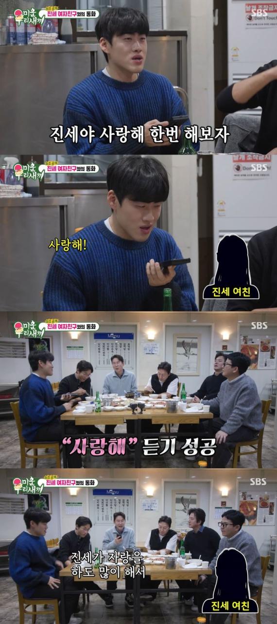 이에 조진세는 여자친구가 전화를 받자마자 “사랑해”라고 했다.